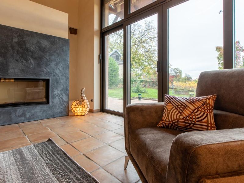 La Tour des Fées dispose de deux espaces en intérieur, un salon cosy avec cheminée et une salle à manger au décor épuré et raffiné.